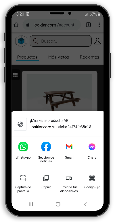 Con la función de realidad aumentada tus clientes pueden colocar el producto virtualmente en la comodidad de su hogar.