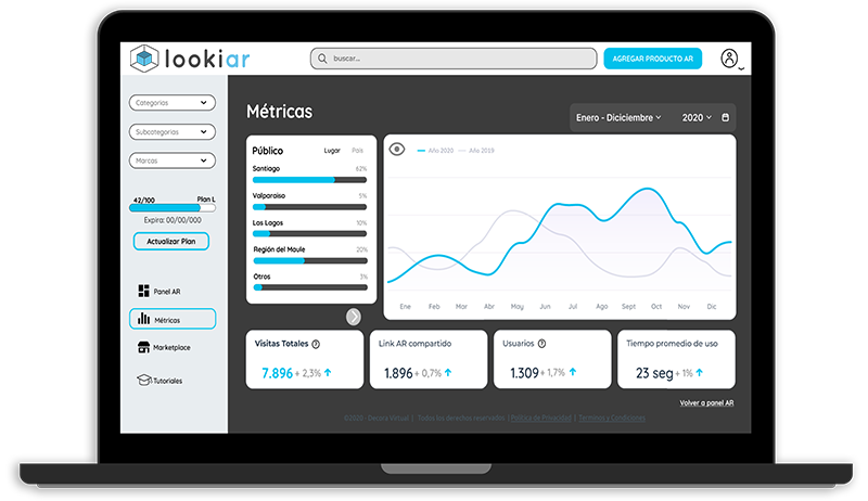 Con nuestro panel de análisis ten un control absoluto de cada producto que tus clientes prueben en AR.