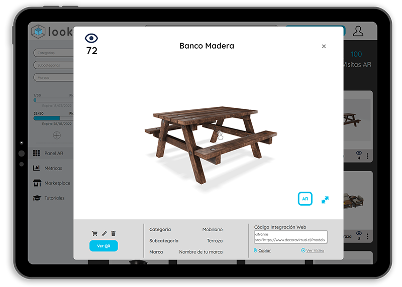 Conoce cuáles de tus productos son los más vistos y obtén información detallada de la interacción AR con tus usuarios.