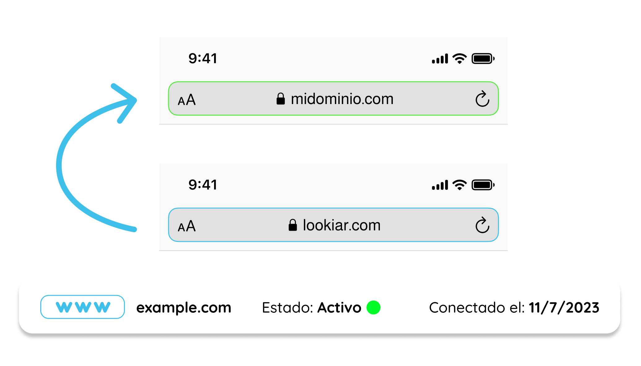 Reemplaza el enlace predeterminado lookiar.com para ofrecer una marca y una experiencia totalmente adaptadas a tu negocio o cliente.